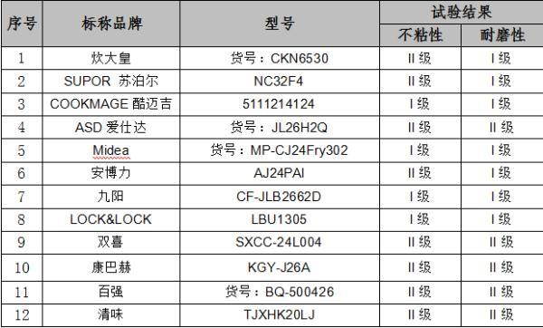 12款不粘鍋的不粘表面無(wú)任何缺陷現(xiàn)象,均符合標(biāo)準(zhǔn)要求。