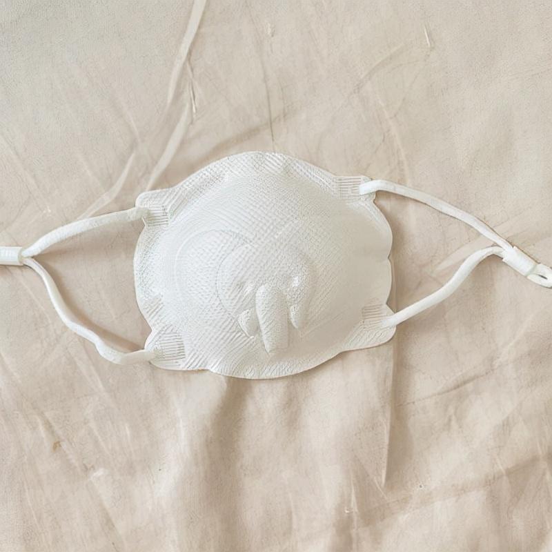 給紅燒肉準備的是嬰幼兒專用的立體小口罩,初設計的時候就是主動向前方凸起來,紅燒肉的舌頭就算是使勁往前伸也不會舔住內里,所以我一點也不擔心它會堵住口鼻。