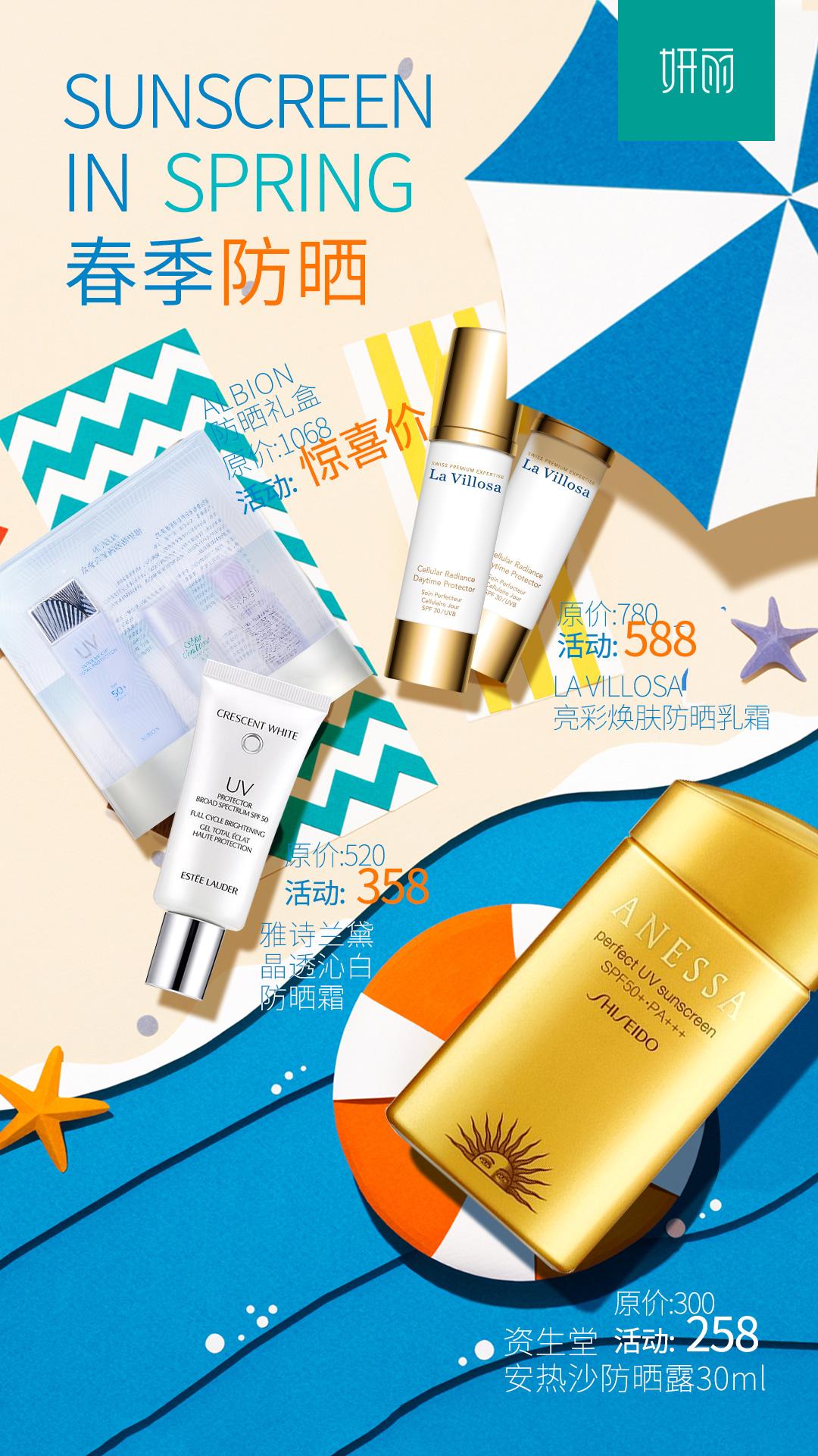 五月防曬正當時,來妍麗化妝品選防曬如果你喜歡陽光,妍麗能為你提供朝九晚五的全天防護,上述防曬明星均在妍麗有售,更多防曬盡在妍麗化妝品。