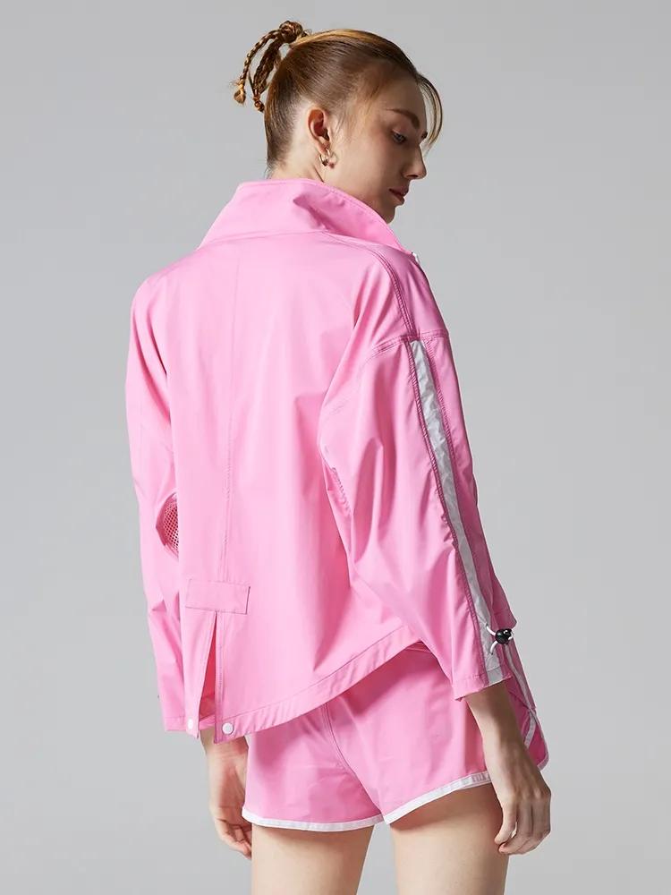 蜜桃粉防曬涼感透氣面料九分袖運動休閑女夾克