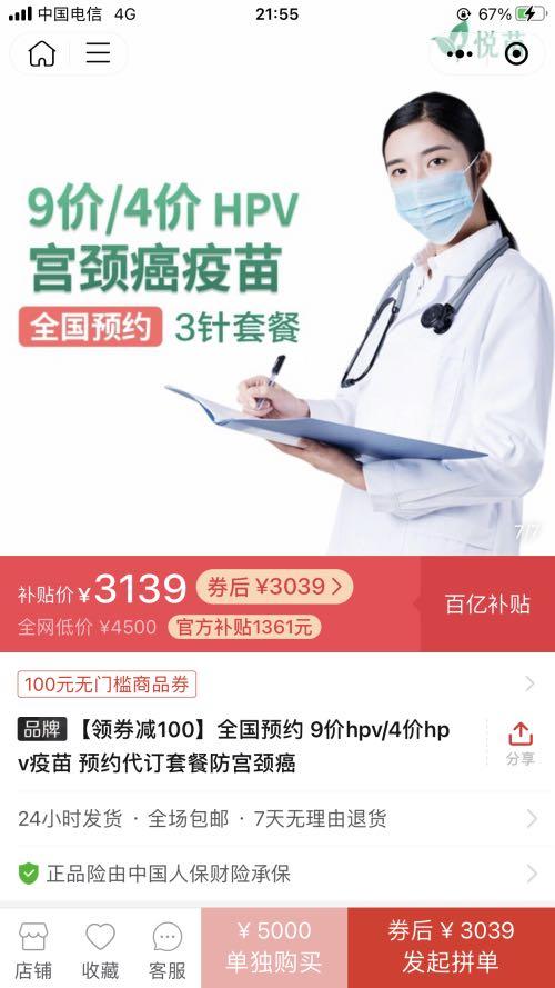 才畢業(yè)當(dāng)上幼師的劉爽,則給自己送了一份520大禮——HPV疫苗?!伴L沙公立醫(yī)院的疫苗很難約,我朋友等了一年也沒排上。”劉爽說,自己平時(shí)喜歡在拼多多百億補(bǔ)貼買平價(jià)彩妝和護(hù)膚品,一搜發(fā)現(xiàn)竟然還有HPV疫苗,“而且價(jià)格很劃算,3000出頭,還是現(xiàn)貨”。