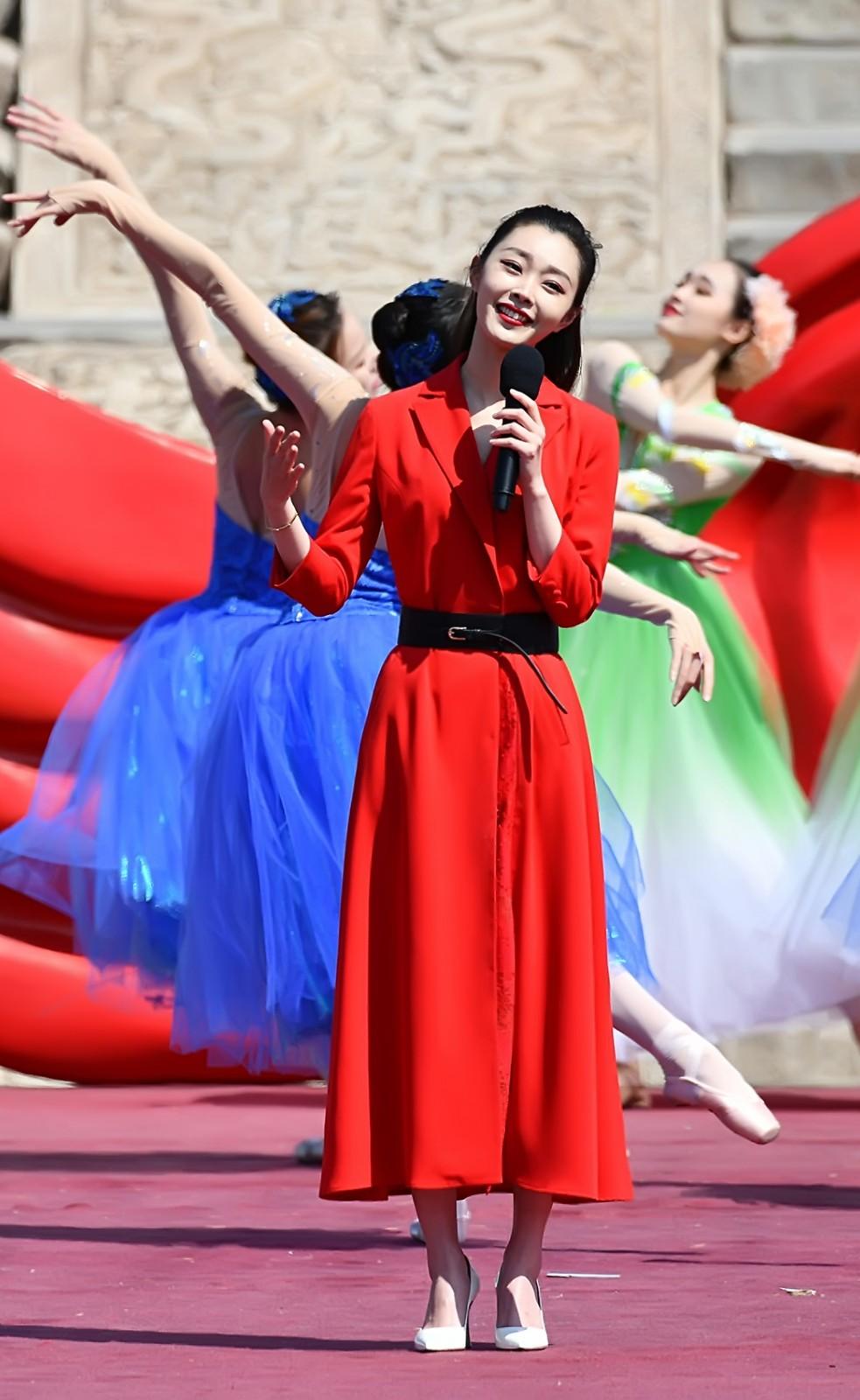 穿上大紅色連衣裙的宋軼,明艷動人,西裝領(lǐng)子的設(shè)計,簡單大氣,系上一條黑色腰帶,紅黑撞色的穿搭,既摩登又充滿時尚感,隨便一站,美成時尚畫報。