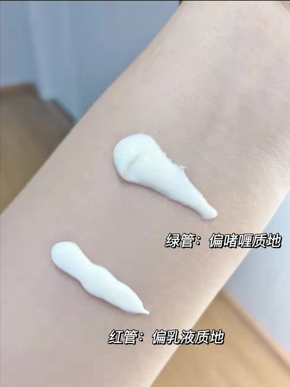 同系列的防曬霜有兩款單品,綠色款保濕啫喱般膚感,更適合偏干性肌膚使用;粉色款是清透水感質(zhì)地,更能滿足偏油性肌膚的膚感需求,涂抹在臉上能夠達到一定的控油果。防曬霜帶有輕微潤色功,使用后皮膚有稍作提亮,但是不會過分假白。
