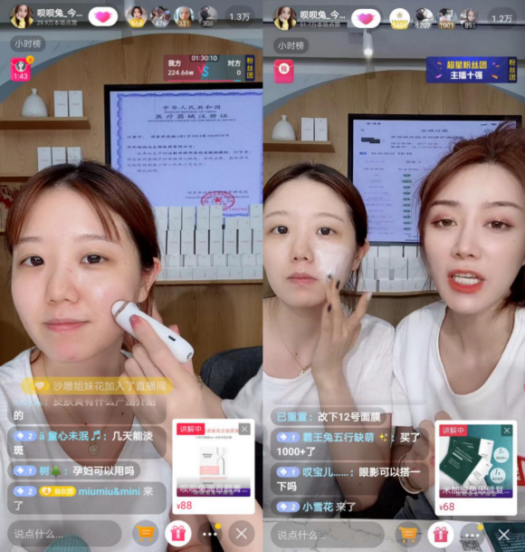 “這款面膜修復(fù)果真的爆好,推薦給大家!”“這個(gè)護(hù)發(fā)精油我自己在用,夏天一點(diǎn)不油膩,用完頭發(fā)不毛躁了?!薄坝峙耐炅?還有寶寶沒(méi)搶到,麻煩工作人員加下庫(kù)存!”