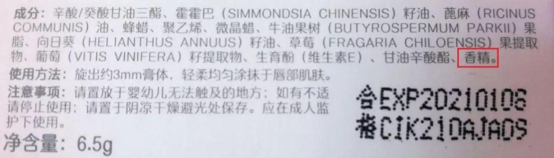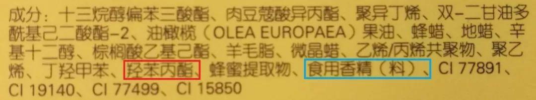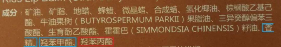 2. 選擇潤(rùn)唇膏:成分表越簡(jiǎn)單、越越好。寶媽可以重點(diǎn)關(guān)注一下潤(rùn)唇膏是否使用了高風(fēng)險(xiǎn)的防腐劑,如果小朋友喜歡用帶香味款的,盡量不選添加日用香精的。