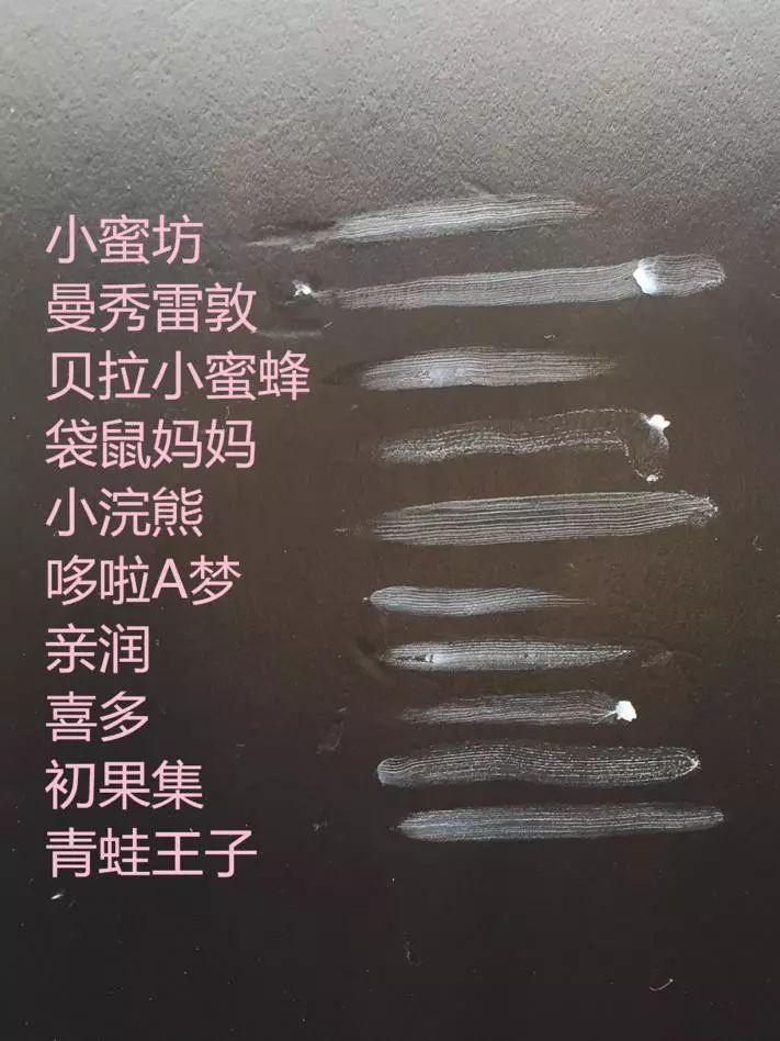小結(jié):膏體較硬的是曼秀雷敦、袋鼠媽媽和喜多,不易涂勻;膏體軟的是貝拉小蜜蜂和親潤(rùn)。