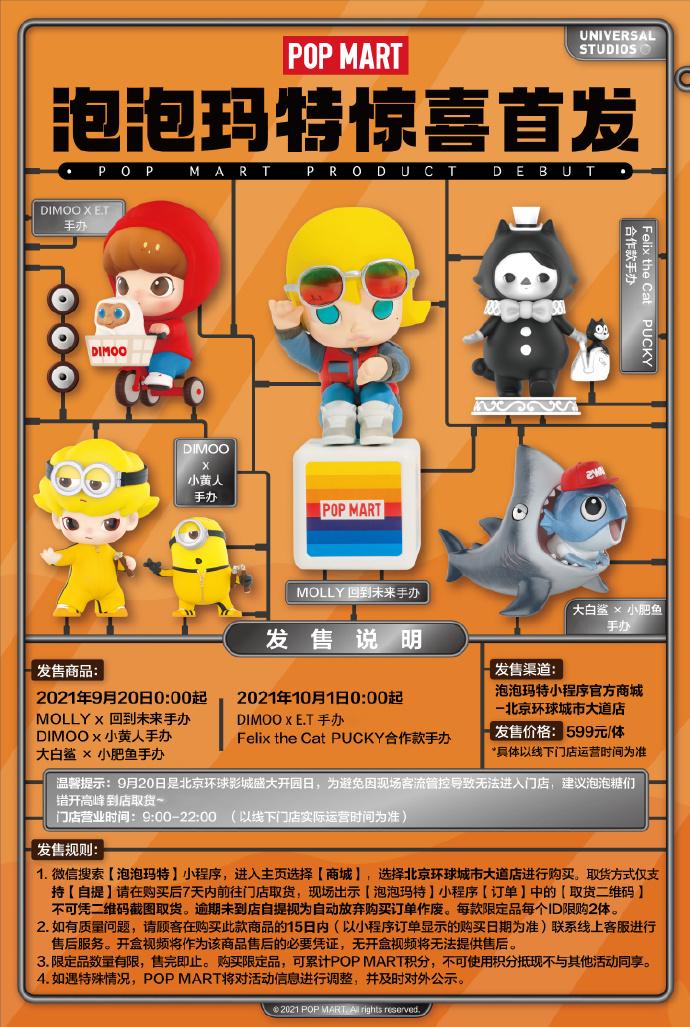 除了在概念店布局設(shè)計上不計成本,泡泡瑪特也將該店作為了重要的營銷領(lǐng)地。在推出的哈利波特小黃人聯(lián)名潮玩后,9月16日,泡泡瑪特宣布在概念店進(jìn)行北京環(huán)球度假區(qū)的五款電影聯(lián)名款手辦的揭幕,包括小黃人、大白鯊、ET等環(huán)球知名IP。