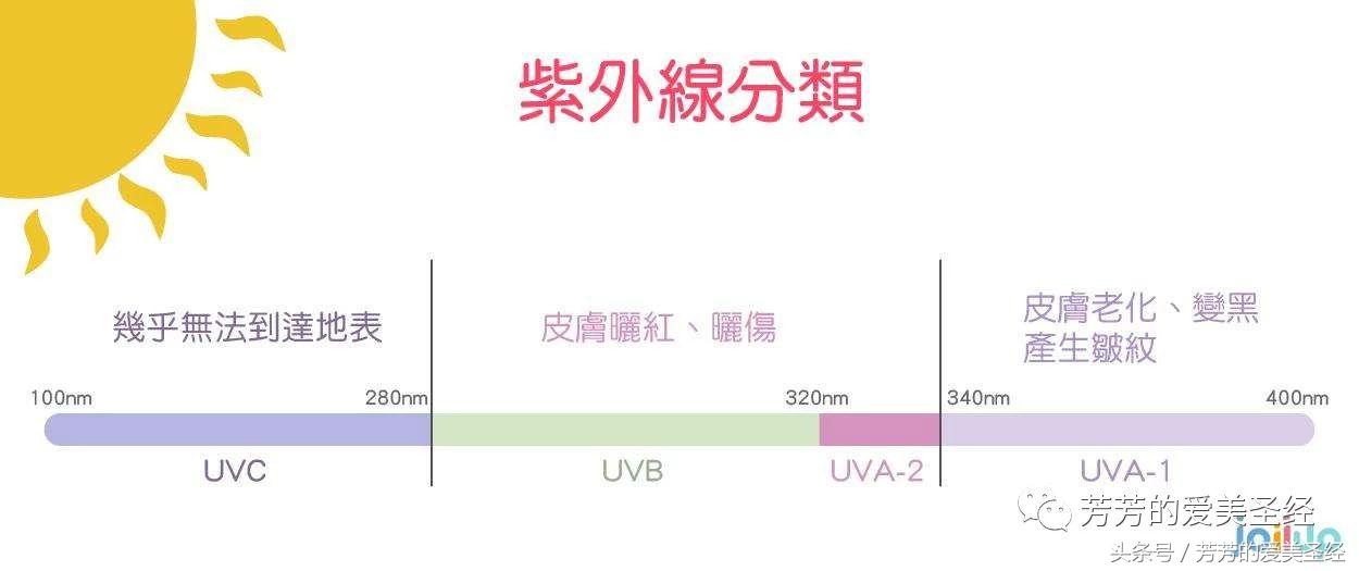紫外線根據(jù)波長不同,分為UVA、UVB、UVC。