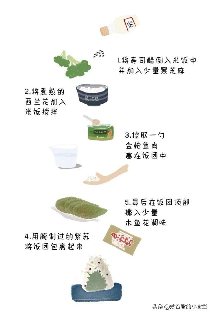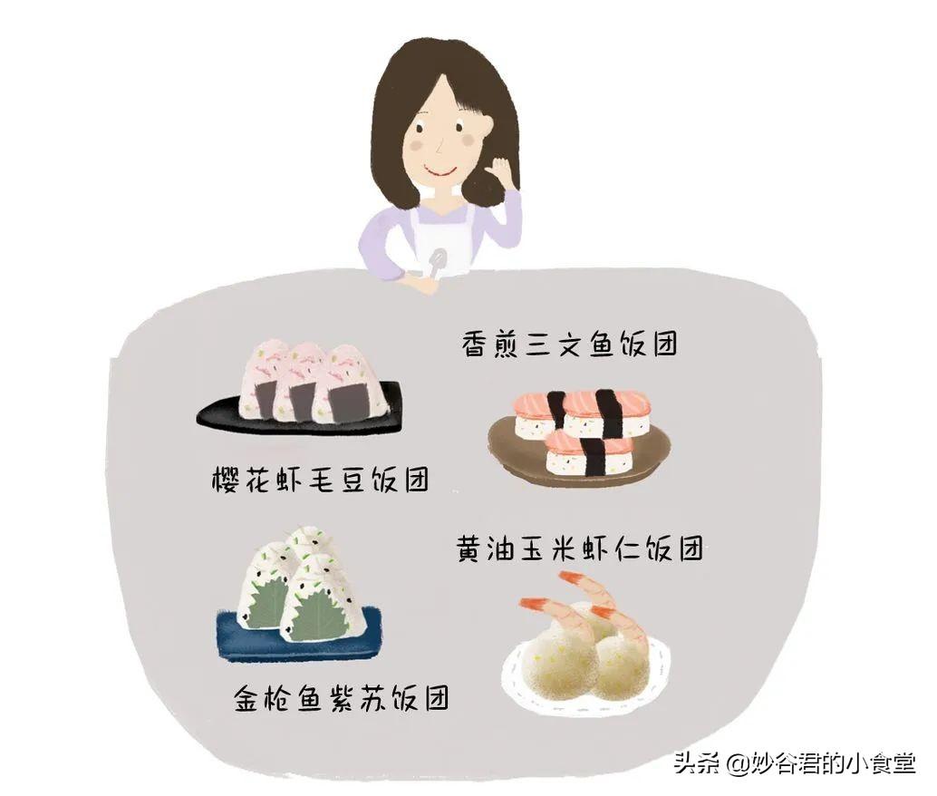 制作者也可根據(jù)自己的喜好添加配料,也可以按照心情捏成不同形狀,飯團(tuán)是真正的“不開火”美味,上手簡(jiǎn)單,加片海苔,制作方便,小小一顆放在便當(dāng)盒里,既可愛又萌趣,米飯包裹豐富的配料,一口超滿足!