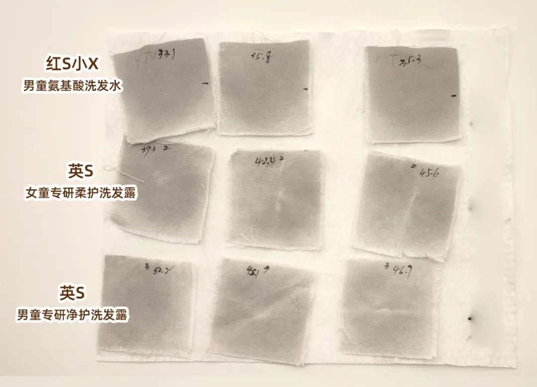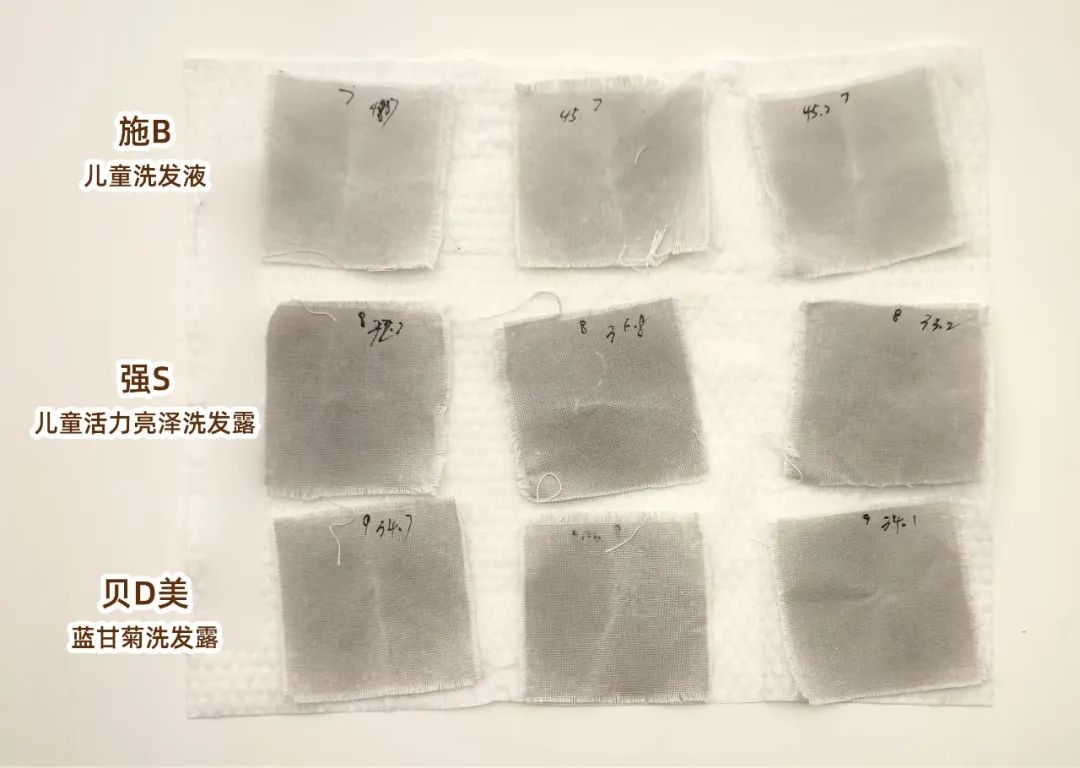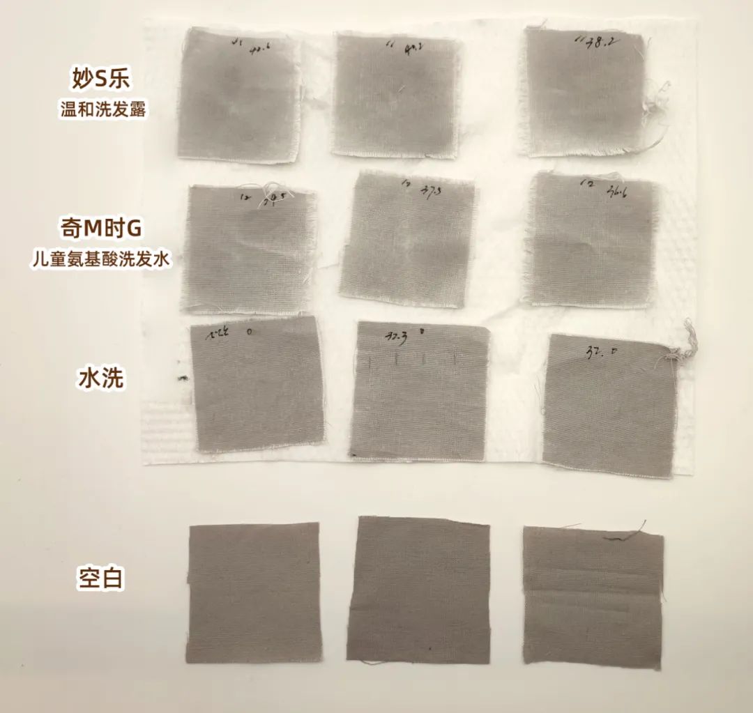 對(duì)比洗滌前后的白度值,差值越大,樣品的去皮脂和去油污能力越強(qiáng)。