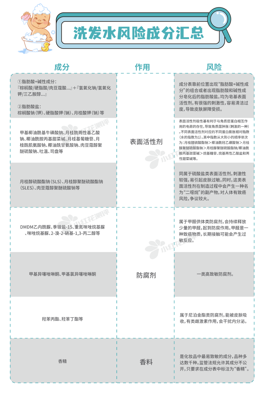 洗發(fā)水中常見的風(fēng)險(xiǎn)物質(zhì)匯總?cè)缦聢D,記得動(dòng)動(dòng)小手保存哦~