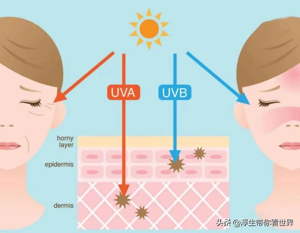 UVA主要破壞皮膚的膠原蛋白和彈性蛋白,使人的皮膚水分流失、老化松弛;而70%的UVB會(huì)被角質(zhì)層吸收,直接作用在細(xì)胞DNA和角化細(xì)胞上,導(dǎo)致曬傷和曬黑。