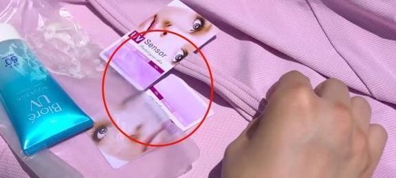 通過(guò)用紫外線筆隔著優(yōu)衣庫(kù)防曬服照射測(cè)試紙,觀察試紙顏色變化。