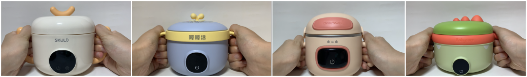其他4款晃動(dòng)手柄,碗體也會(huì)隨之傾斜,存在被打翻的危險(xiǎn)。