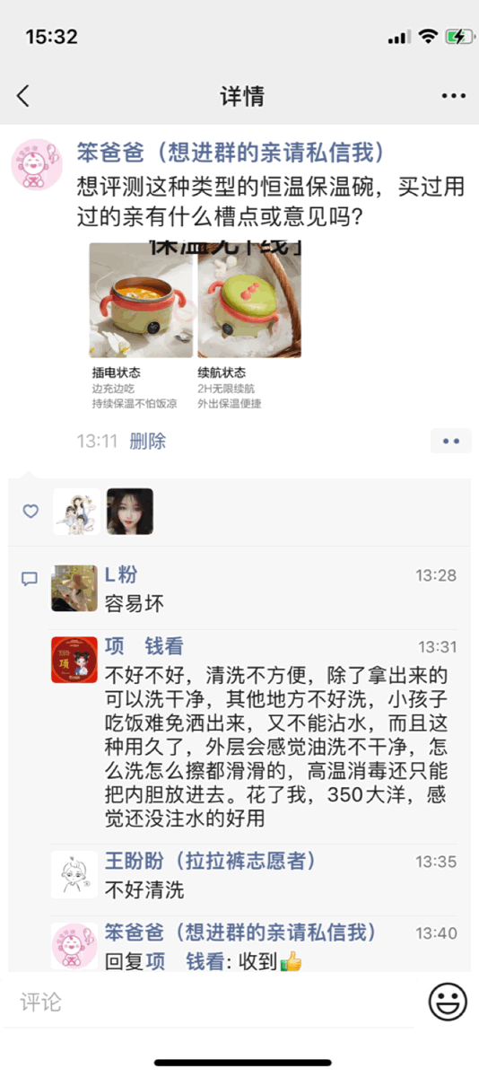 不少寶媽想入手電熱恒溫碗,但又怕是“坑”:真的能做到長(zhǎng)時(shí)間恒溫嗎?需要天天充電嗎?能正常水洗嗎?方便外出攜帶嗎?之前笨爸爸做小調(diào)查的時(shí)候,也有不少寶媽認(rèn)為有槽點(diǎn)。