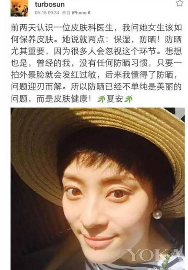 相比上面的硬防曬,軟防曬也是相當(dāng)重要的。孫儷就已經(jīng)養(yǎng)成了使用防曬霜的習(xí)慣。