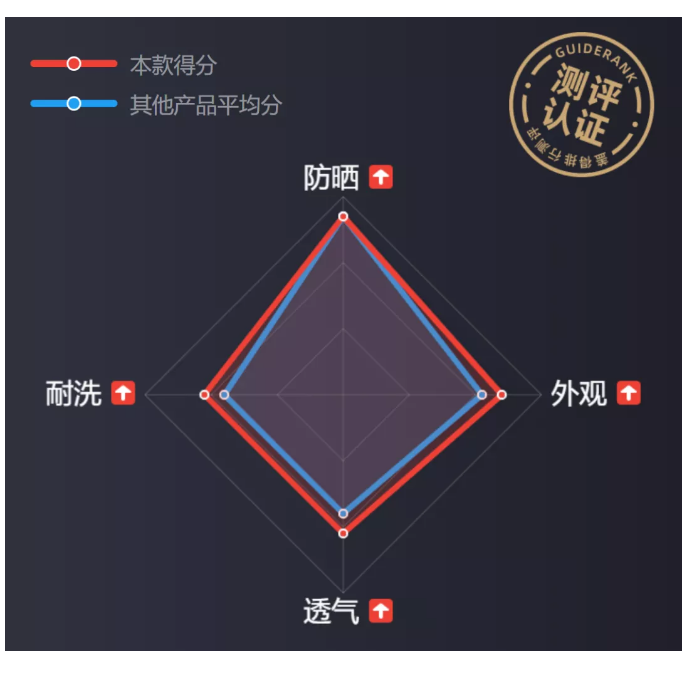 在廣州7月份的中午2點,戶外紫外線強度約為2856μW/cm2。遮陽帽帽檐下方強度為4μW/cm2,帽頂下方強度為5μW/cm2,阻隔率為99.7%以上,在同類測試中表現(xiàn)突出。