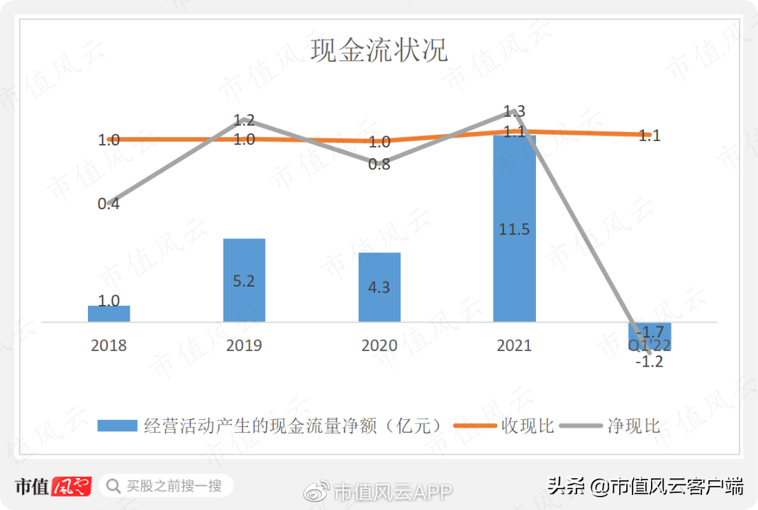 2020年一季度,公司經(jīng)營(yíng)活動(dòng)產(chǎn)生的現(xiàn)金流量?jī)纛~為-1.7億,凈現(xiàn)比為-1.2,主要是因?yàn)楣?yīng)商付款方式變化所致。