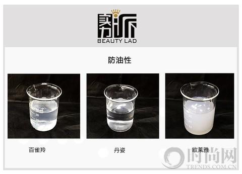 測(cè)評(píng)結(jié)果:分別將百雀羚防曬霜、丹姿美白防曬露、歐萊雅隔離露加入溶液中,觀察其變化。當(dāng)百雀羚遇到油性溶液后,出現(xiàn)少量的溶液,溶液變的稍微渾濁,說明遇油會(huì)花妝脫妝;丹姿美白防曬露遇到溶液后,呈現(xiàn)條狀,與溶液完全分離,而且溶液較清,說明丹姿美白防曬露遇到出油情況,也會(huì)雷打不動(dòng)的服帖不花;至于歐萊雅隔離露的防油性不用多說,看圖便知。