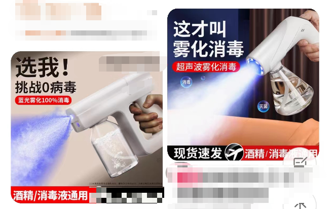 功能被夸大了,其藍光只具有照明功能,而沒有消毒作用。注意,酒精和84消毒劑經(jīng)噴霧槍霧化后,容易被人體吸入,會對口、鼻甚至肺部黏膜造成傷害。
