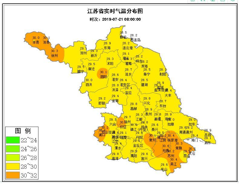 7月23日高溫度:全省大部分地區(qū)35~36℃,淮北地區(qū)37~38℃