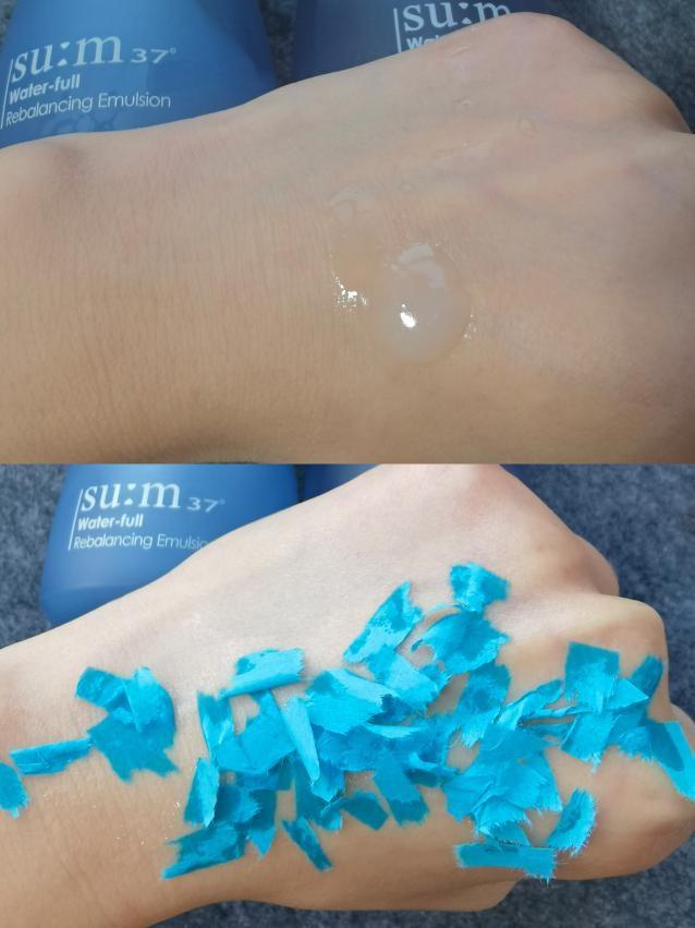 水是輕薄的水狀,氣味清新,流動(dòng)性很強(qiáng),吸收也比較快,保濕果也還不錯(cuò)。但是這款乳液質(zhì)地輕薄,吸收卻不太好,有點(diǎn)黏膩。比較適合干性肌膚的寶媽使用。