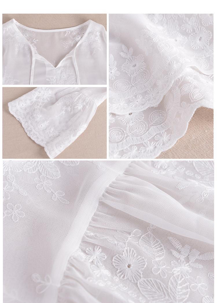 小V領系帶文藝氣質(zhì),精致的鉤花設計和喇叭袖結合,起到了很好的減齡果,內(nèi)贈親膚小吊帶,若隱若現(xiàn)的透視感又帶有一絲小性感,美麗的同時還能防曬,多好!