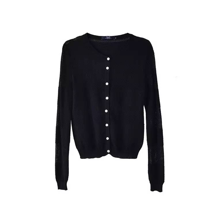 圓領鏤空單排扣針織開衫