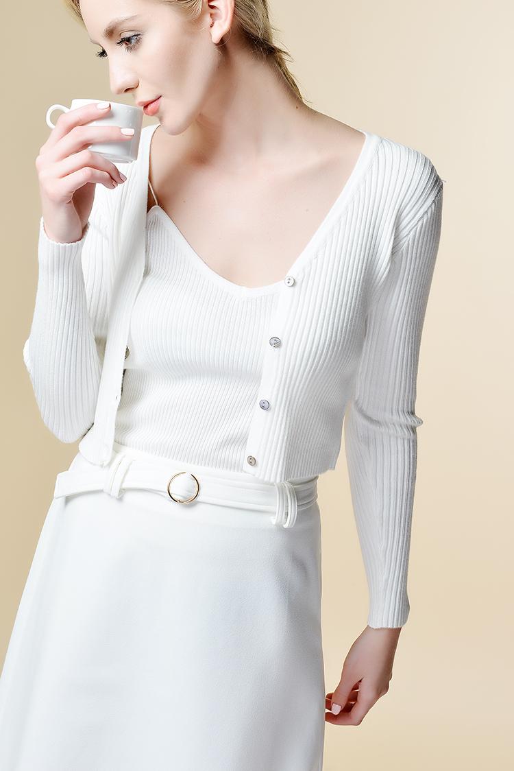 此款針織衫,小V領的款式,讓小臉看起來更加的精致,豎向螺紋坑條設計修飾身形,短款版型露出內(nèi)搭背心吊帶,完全不用擔心遮住你想要展現(xiàn)的美。多色可選,滿足你百變的需求,適宜防曬打底,早晚出門或空調(diào)房均可穿著。