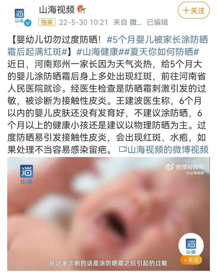 ■此前報道:5個月嬰兒因涂防曬霜導(dǎo)致接觸性皮炎/微博截圖