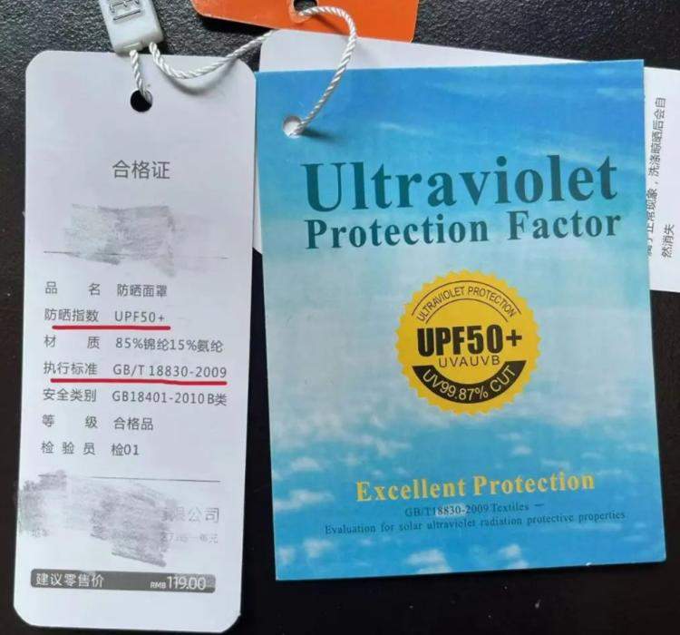 一看標簽標準GB/T 18830-2009明確表示,只有當樣品的UPF>40,且T(UVA)AV UVA、UPF兩個“硬指標”。