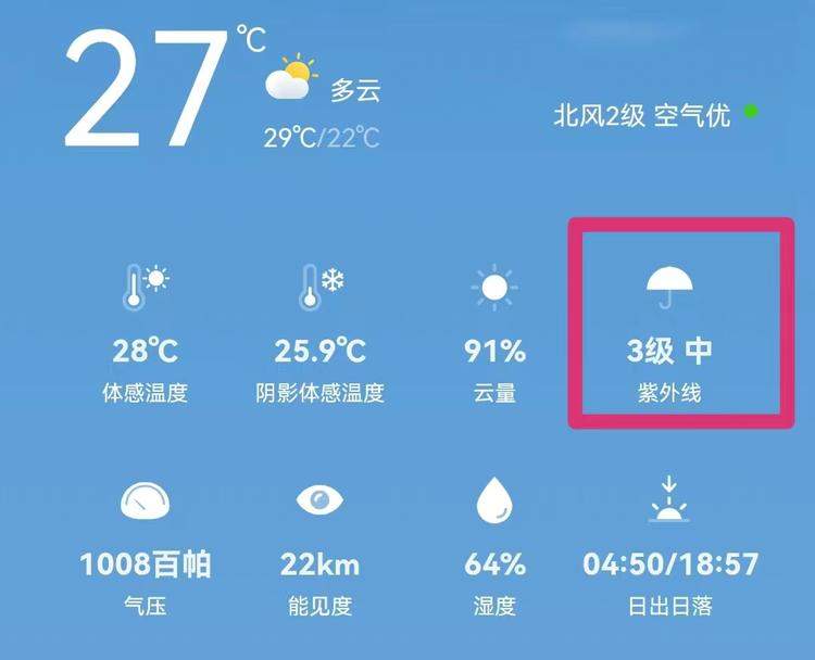 如果不確定陰天的紫外線是否強烈,可以查看天氣預(yù)報中,紫外線指數(shù)提醒,一般紫外線指數(shù)3級或3級以上就需要防曬。
