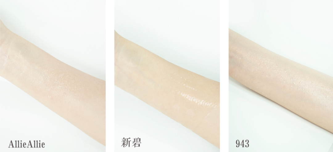 我們把防曬在手臂抹勻后靜待2分鐘,然后噴水,測試是否具備防水果。以是否會(huì)形成小水珠為判斷依據(jù)。