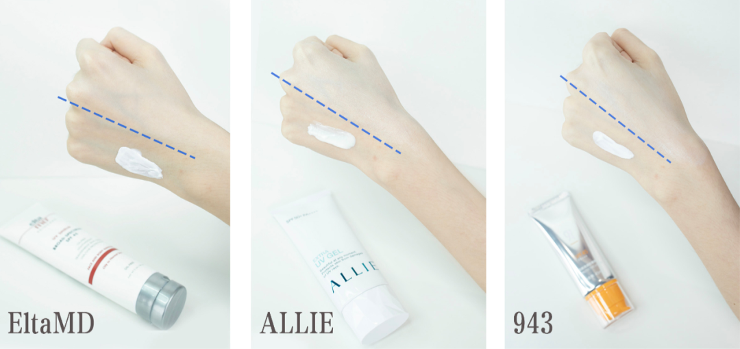 泛白:有泛白情況,與悅顏、Allie的泛白程度差不多,但消失速度快,與EltaMD的泛白消失速度差不多。