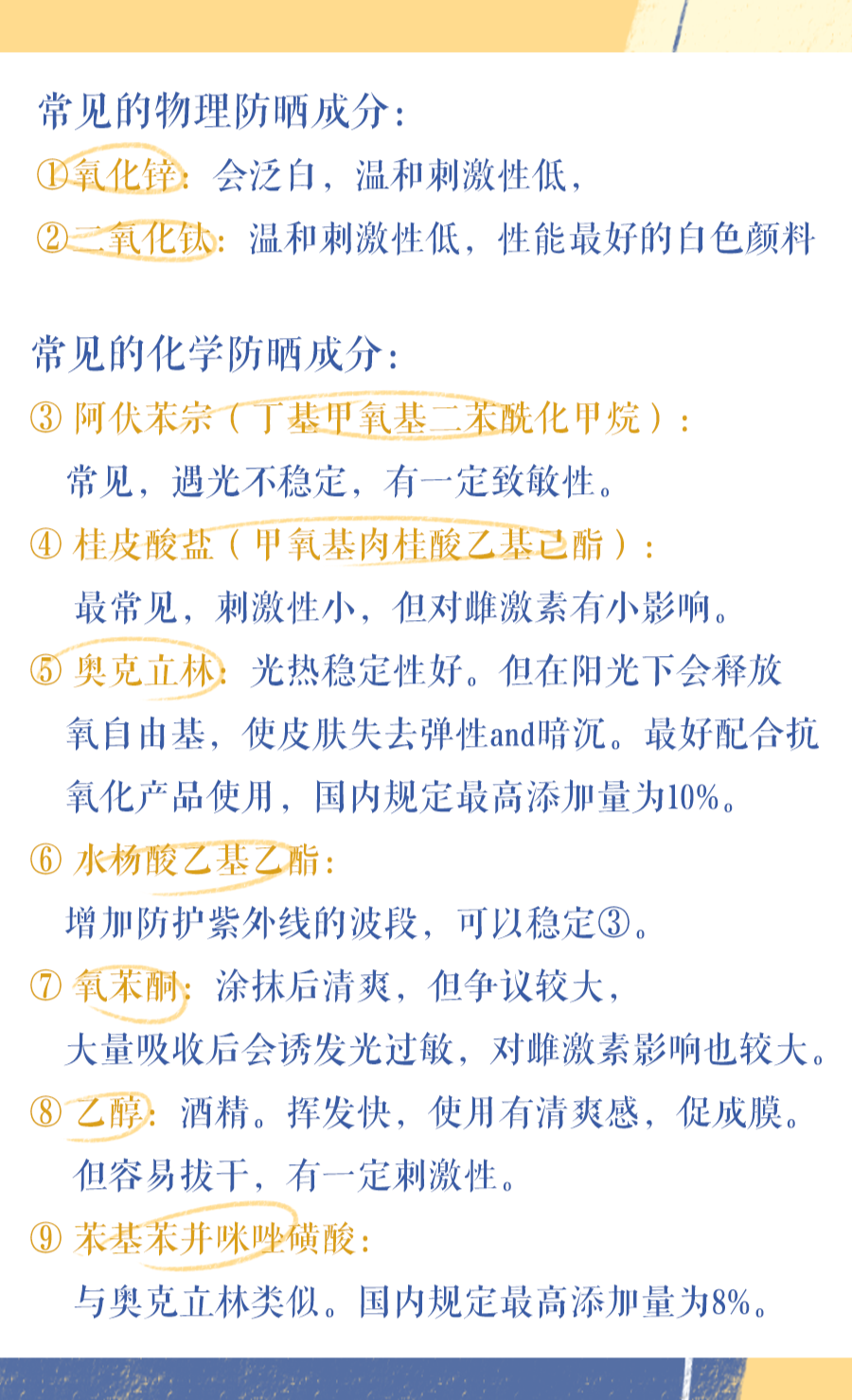 下面講一下防曬成分,這些賊長的學(xué)名仿佛是在讀俄羅斯文學(xué)……