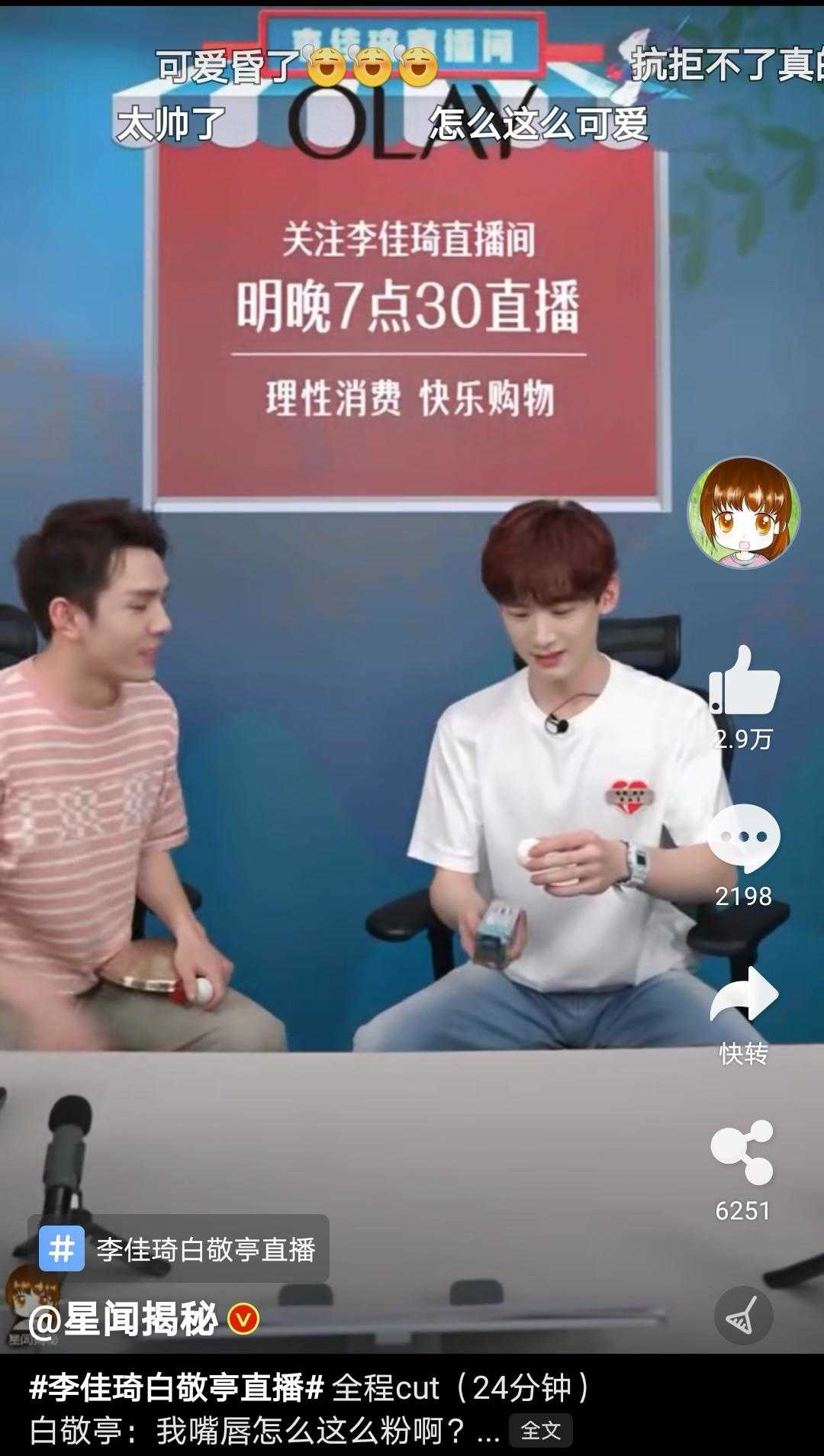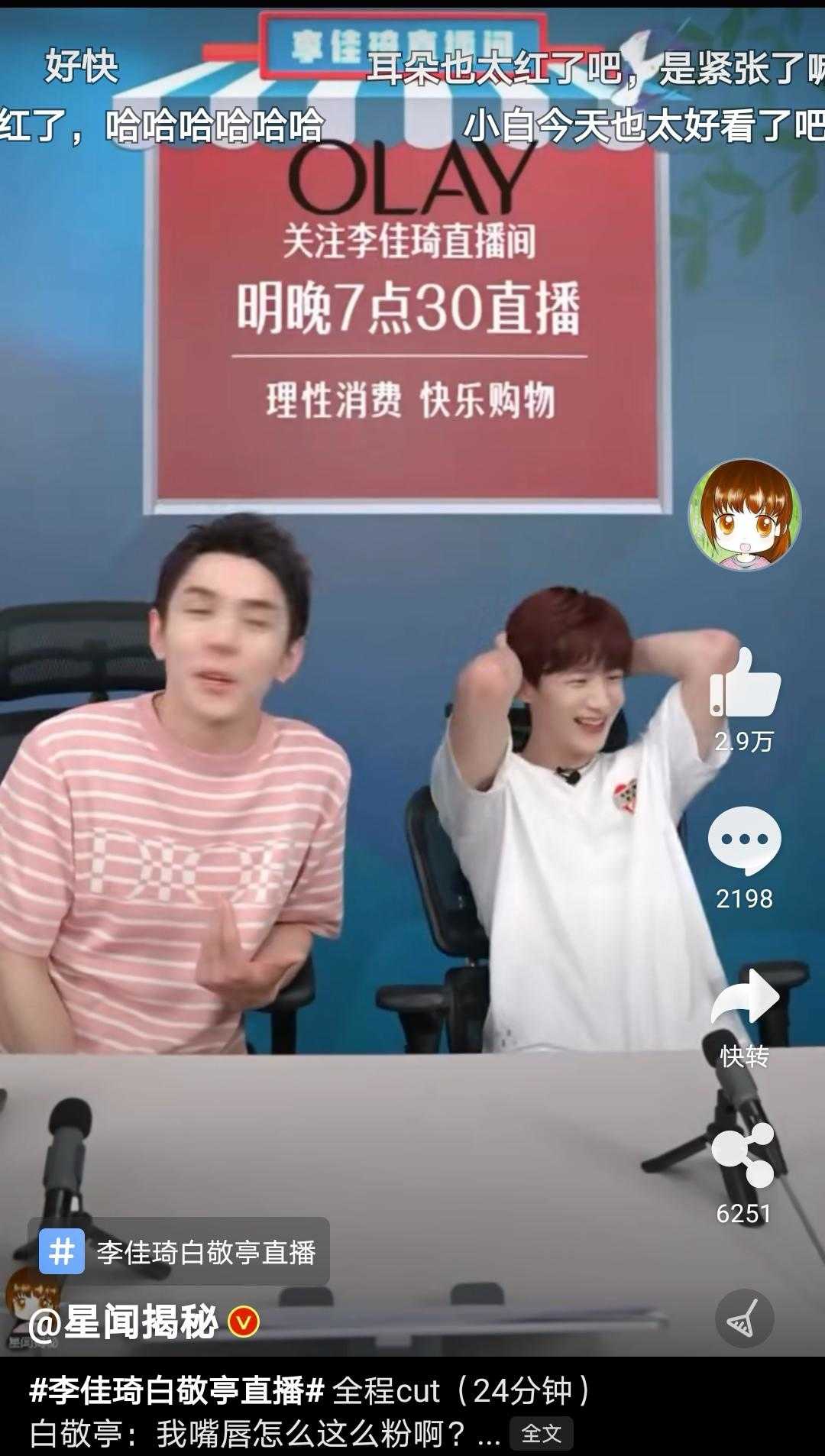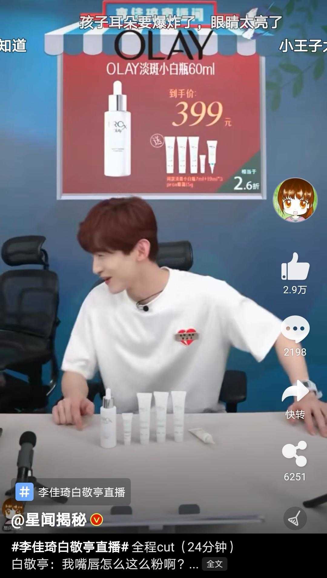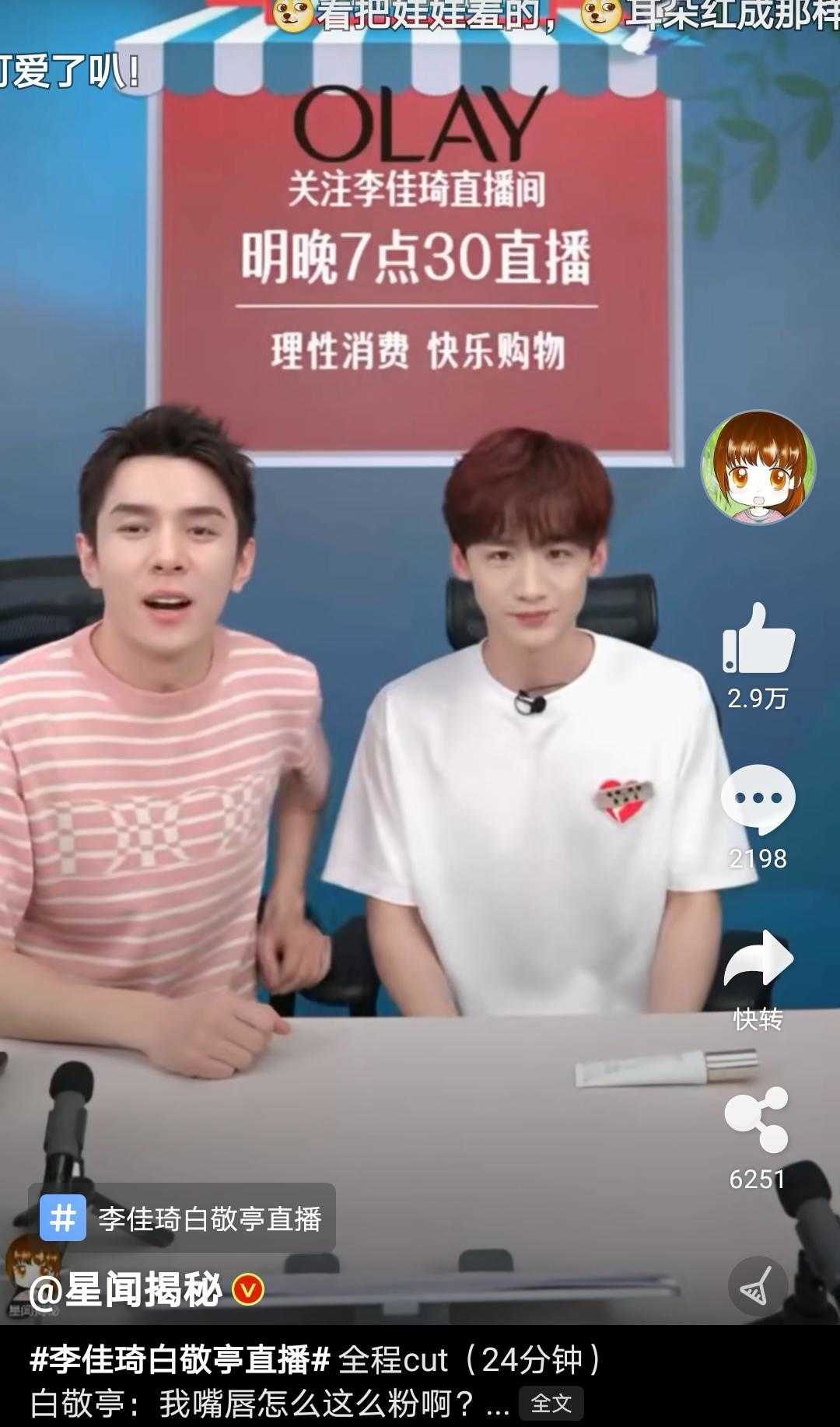 ????準(zhǔn)備要走了直接把李佳琦推到旁邊,歡迎來到白敬亭的直播間,哈哈!