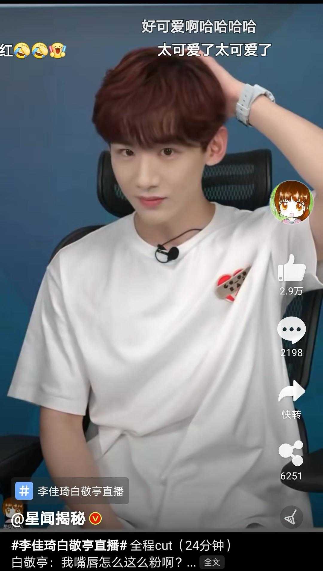 ????小白是真的很白,比李佳琦還白!他還嫌棄自己的嘴唇太粉了,可能是濾鏡吧,看著不習(xí)慣!真的是一個(gè)鐵憨憨白白!?