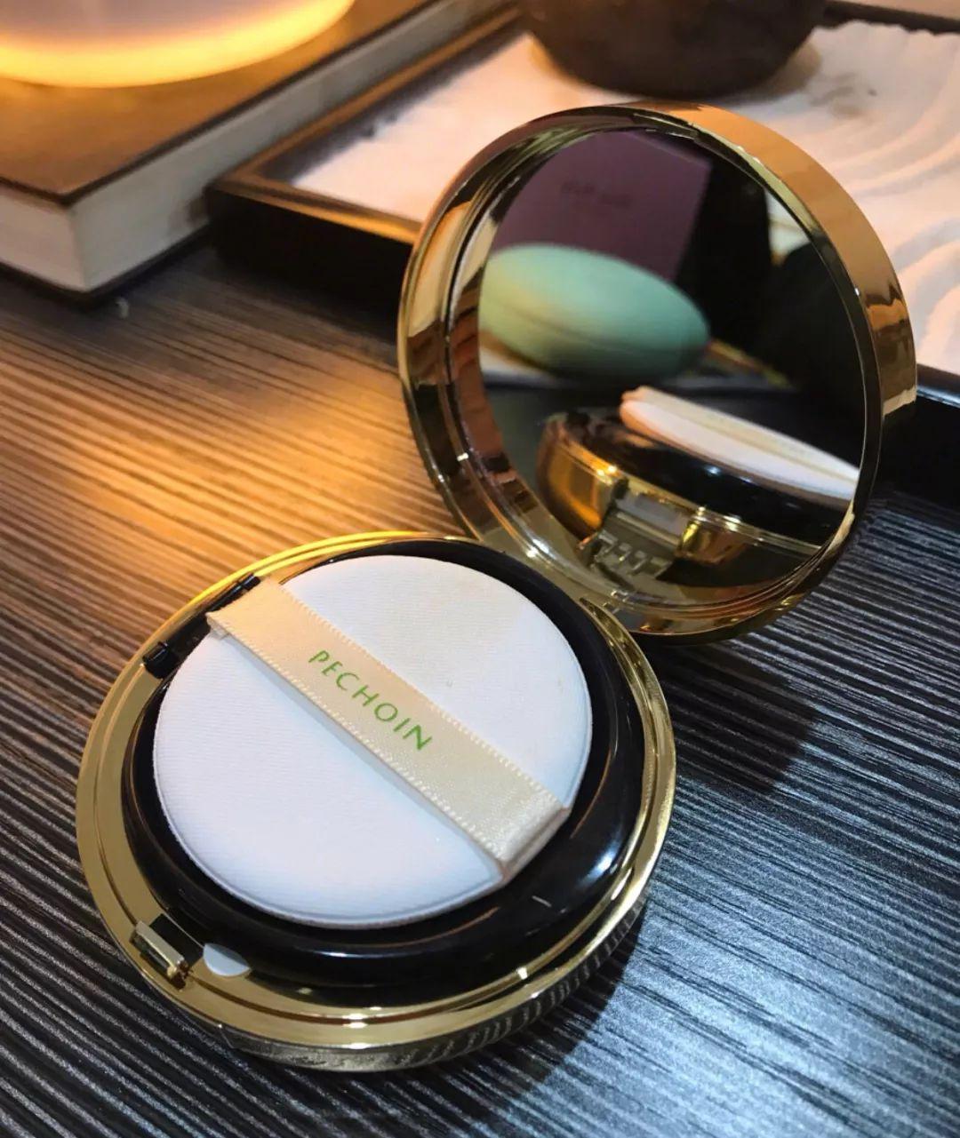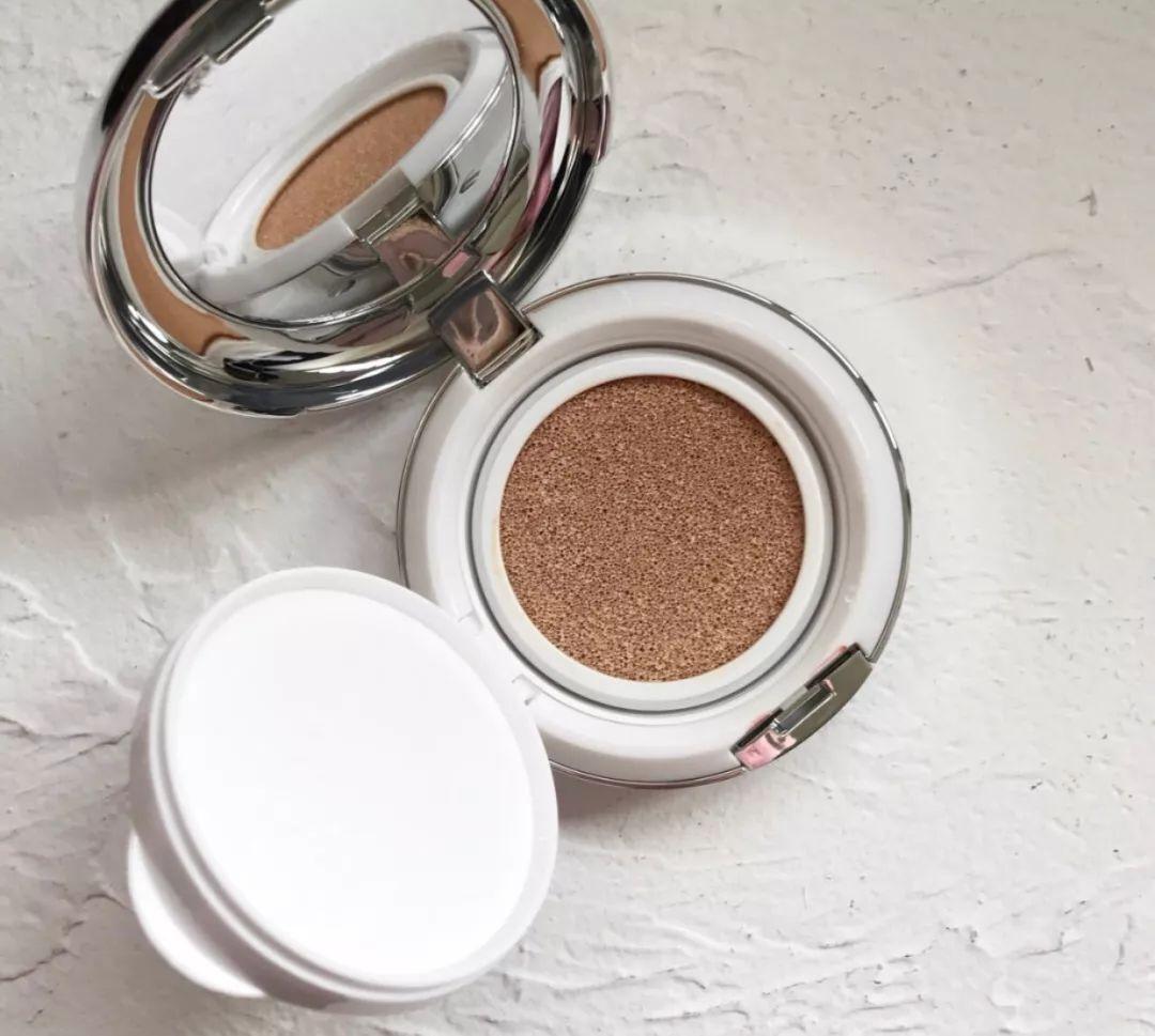 氣墊中添加了護膚精華和玻尿酸,所以上妝后特別滋潤、服帖。