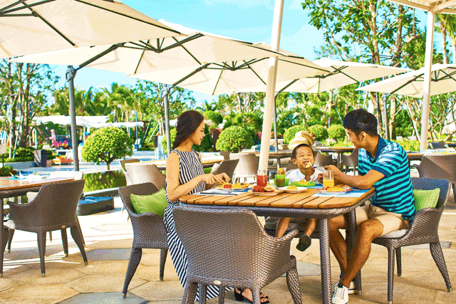 酒店的自助早餐也特別豐盛,檔口很多,中西式、南北口味、海南特色皆有,連現(xiàn)煮的生滾粥都有,爸媽可以根據(jù)寶貝的口味選食材現(xiàn)煮。早餐期間還設(shè)有兒童餐區(qū)和玩樂區(qū),寶貝吃飽后,爸媽就可以舒心地享用早餐了。