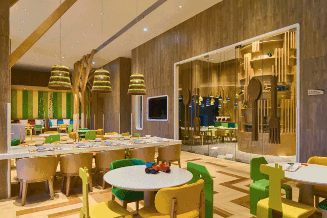 酒店共有7間餐吧,其中特色的是三亞酒店中少有的兒童餐廳—趣,與全日制西餐廳相連,自助早晚餐時(shí)都可免費(fèi)坐過來,還為寶貝特別準(zhǔn)備了專屬美食。天真靈動的童趣設(shè)計(jì)裝飾與可愛的兒童專屬餐具桌椅,讓小朋友終于可以乖乖地吃飯。此外,兒童餐廳每日還會舉辦兒童烹飪課程,或者是變裝表演(服裝餐廳免費(fèi)提供)等親子活動,讓小朋友們不僅吃的好玩得好,更能度過愉悅的時(shí)光。