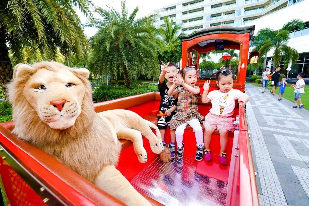 爸媽在辦理入住時(shí)可以拿到一張親子活動安排表,所有活動統(tǒng)統(tǒng)免費(fèi)(要提前預(yù)約)。只要小朋友吃得消,從早玩到晚沒有問題。如果想自己安排時(shí)間,兒童俱樂部、戶外兒童游樂區(qū)、兒童水上樂園都是親子玩樂的好去處,此外還可以帶娃去沙灘挖沙在海邊椰林樹下的吊床躺著吹海風(fēng),泳池邊的礦泉水、浴巾、兒童臂漂、救生衣、小船以及沙灘的挖沙工具都是免費(fèi)提供。大一點(diǎn)的寶貝還可以跟著爸媽一起去騎行(酒店有免費(fèi)自行車提供),對了酒店的觀光小火車也是可以免費(fèi)乘坐的,每日還有親子泡泡趴一片歡樂的海洋不要錯過。