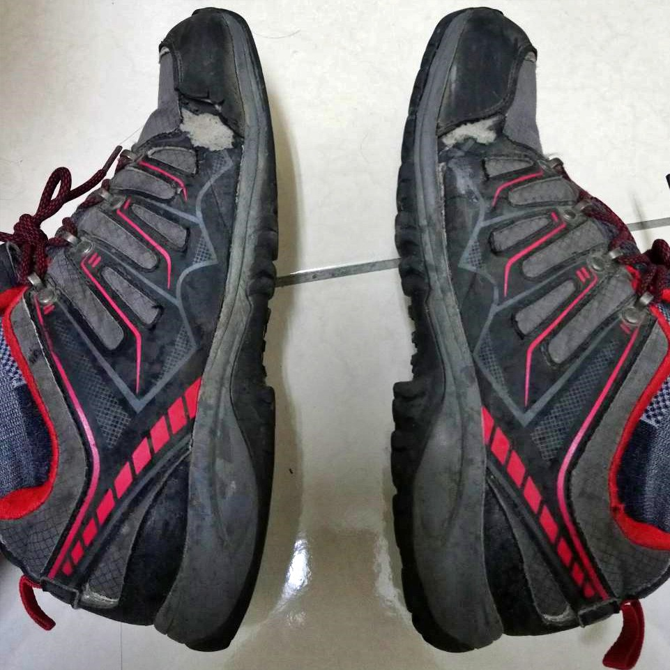 當(dāng)時(shí)僅有跑鞋防滑性不足,且不確定日后會(huì)不會(huì)繼續(xù)登山,不想花太多的錢買裝備,故以平價(jià)且平時(shí)可以穿的鞋款為主,買了雙不知名的平價(jià)登山鞋,但在高幫中幫與低幫間猶豫很久,考量平日可穿的情況下后來(lái)選擇低幫作為我的第一雙登山鞋。