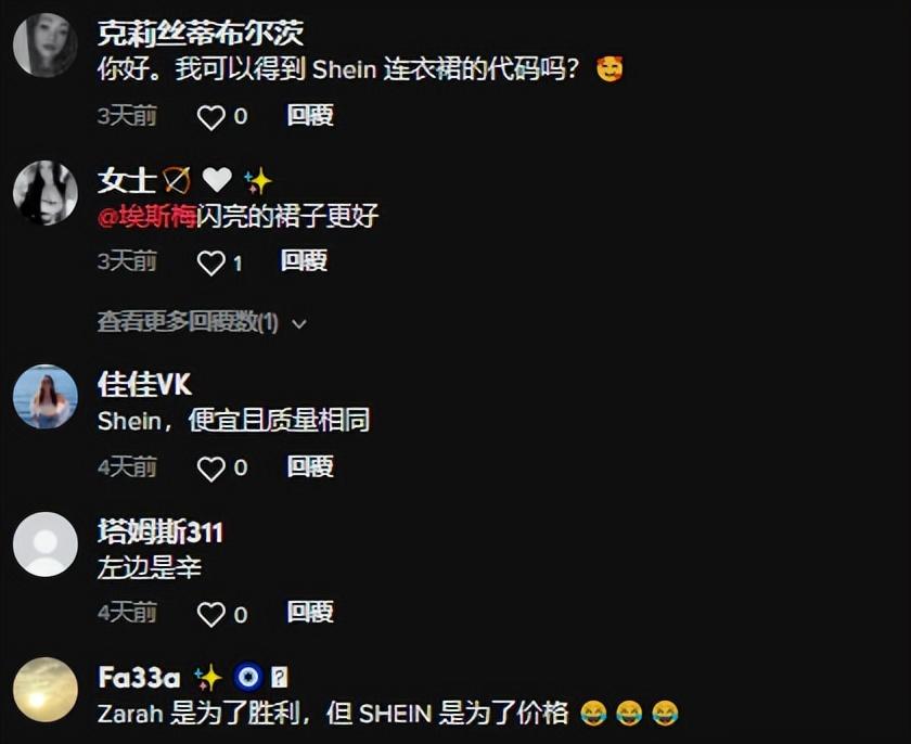 近日,TikTok上一條 SHEIN 和 Zara服裝對比視頻意外走紅,引發(fā)了眾多平臺用戶的跟風(fēng)熱議。