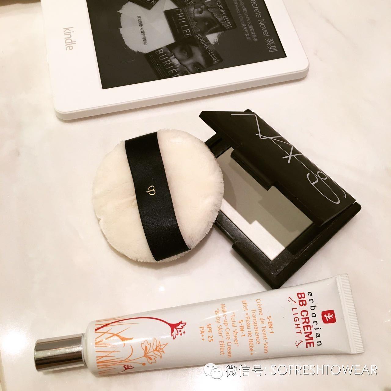 1.nars散粉餅搭配cpb粉撲,無色定妝散粉,略帶小小珠光,控油且增強(qiáng)持妝,素顏時候容易出油嚴(yán)重也會涂一點,果立竿見影;