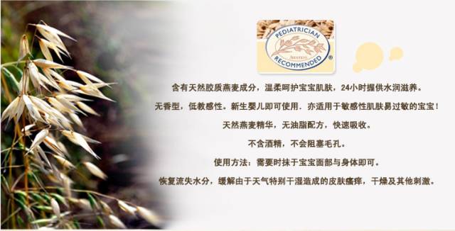 Aveeno產(chǎn)品多使用了燕麥和大豆成份,以、溫和、無刺激為大賣點(diǎn),主要適合中性偏干、敏感型肌膚和嬰兒使用。是抗敏修護(hù)第一名的優(yōu)良品牌。