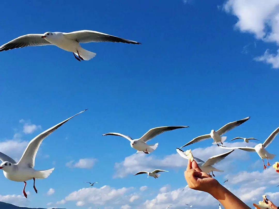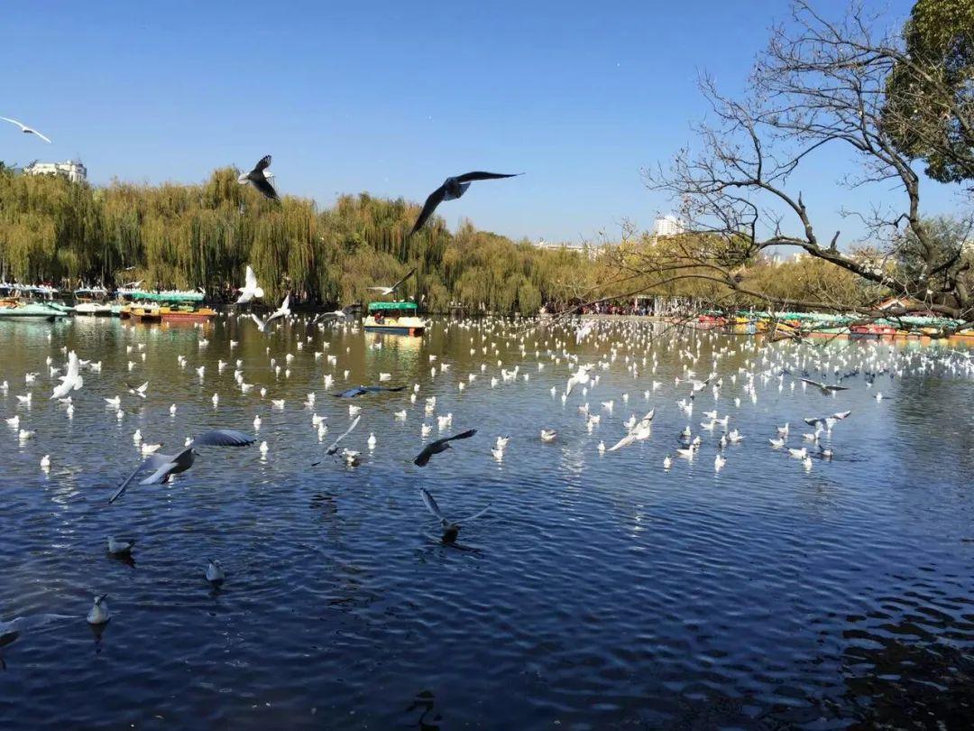 12-次年2月,冬季開始,溫差比較大。群群躲避北方寒風(fēng)的紅嘴鷗,迢迢地從遙遠(yuǎn)的西伯利亞貝加爾湖飛來,落棲在昆明城中的盤龍江、翠湖、滇池等水域,人們紛紛前來觀看這些小精靈,整個城市一派祥和的景象。