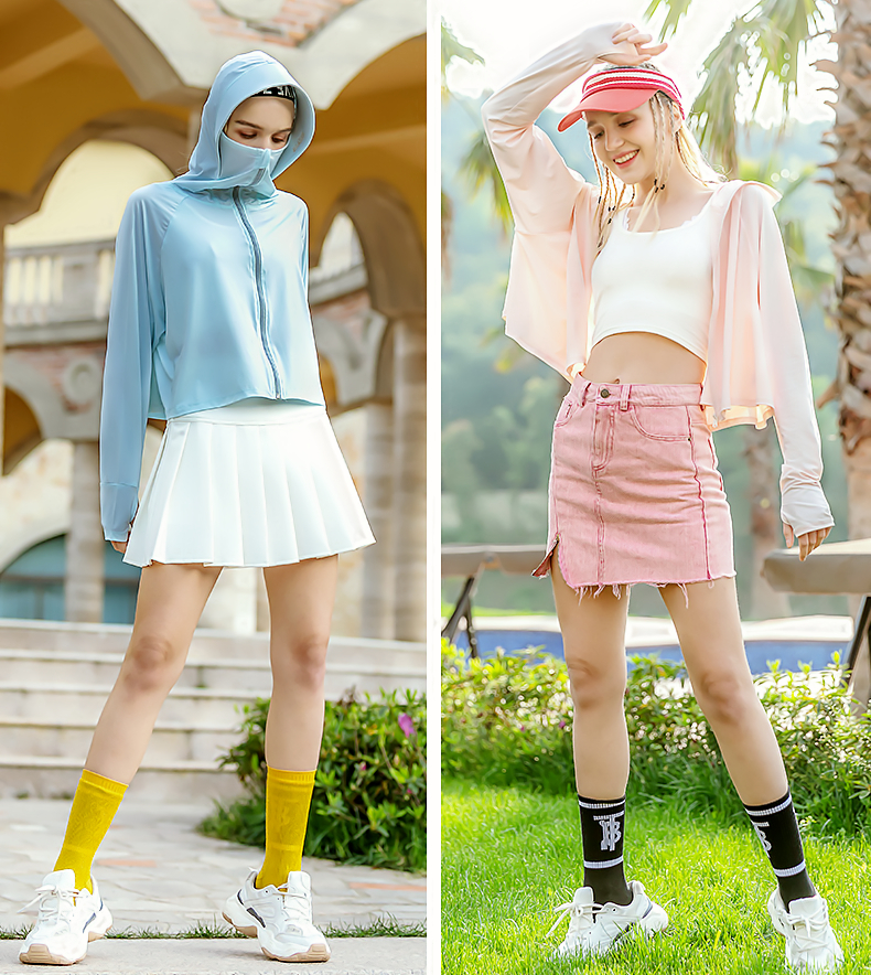 升級版防曬材料,360°高倍防曬,仿佛行走在室內(nèi)高科技冰感面料,就像穿著隱形“空調(diào)”,涼爽不悶熱1/4肌膚接觸,親膚不貼膚,如同裸奔一樣輕快國際大品牌,藏肉、顯腿長,時尚百搭穿上它就算夏天在太陽下暴走2小時
