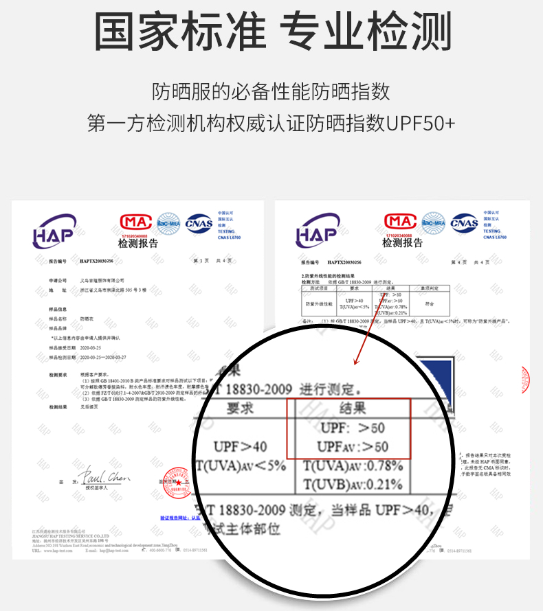 它的防曬指數(shù)>50這已經(jīng)是目前防曬衣里相當(dāng)高的防曬成績了是很多普通防曬衣都難以達到高度