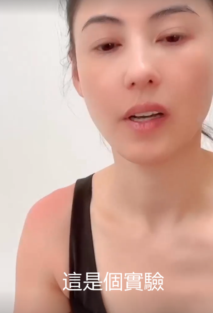 之后,她對著鏡頭示范涂防曬霜,并介紹產(chǎn)品的好處。