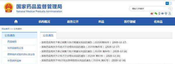 藥監(jiān)局發(fā)布關(guān)于31批次假冒化妝品的通告。